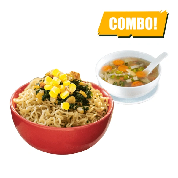 Tasty Corn Maggi, loaded with sweet corn and flavorful spices, paired with a warm, savory Soup. A light, comforting combo that’s perfect for a cozy meal.